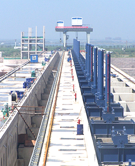 公司專業(yè)生產(chǎn)的各類平面、弧型閘門,各類卷揚、門式、移動式啟閉機,各類清污機、攔污柵、升船機、壓力鋼管、錐形閥等超大型、大型水工金屬結(jié)構(gòu)件和各類起重機遠(yuǎn)銷全國26個省、市、自治區(qū),并出口到16個國家和地區(qū),廣泛應(yīng)用于全國重點工程建設(shè),如長江三峽永久性船閘工程、淮河蚌埠閘擴(kuò)建工程、浙江溫州珊溪水利樞紐工程、四川岷江紫坪鋪水利樞紐工程、浙江省分水江水利樞紐工程、中國河口第一大閘曹娥江攔河大閘和港口、船舶制造企業(yè)等。